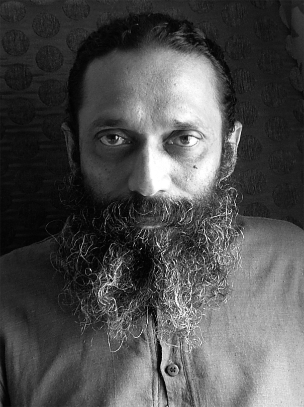 Born in 1953, in Pattiam, Kerela. He studied at the College of Art and Crafts, Chennai, 1976. Faculty of Fine Art, M.S. University, Baroda, 1979 and Ecole Nationale Superior Des Beaux Arts, Paris, 1986.