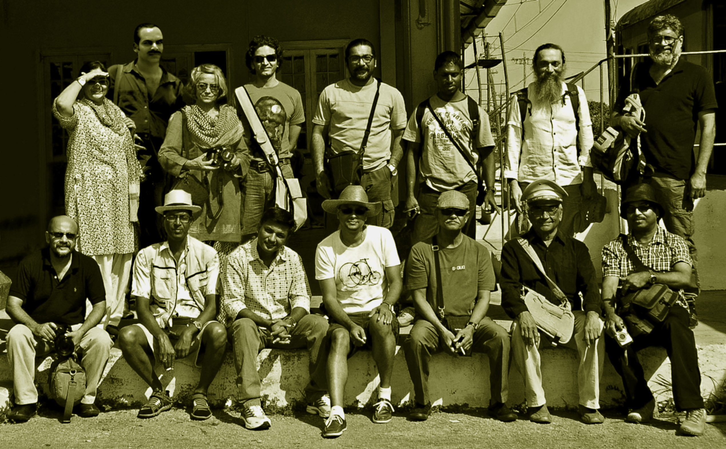 The invited artists were, (as below in photograph). Standing L-R: Vasundhara Tewari Broota, Théodore Mariano Mesquita, Anupam Sud, Tushar Joag, Karl Antao, Julio D’Souza, Valsan Kolleri and Walter D’Souza. Sitting (L-R): Veer Munshi, Malcolm D'souza (official), Baalaa R, Avijit Dutta, Prabhakar Kolte, Nagji Patel and Baiju Parthan.